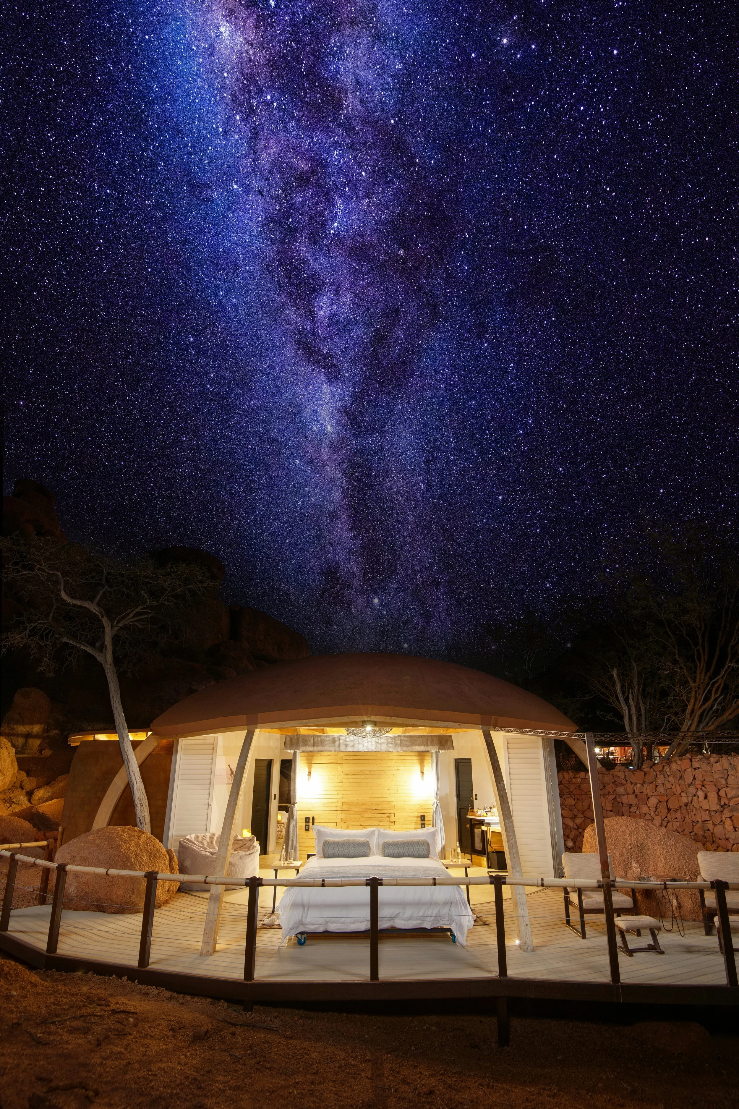 A modern oasis in the Namib Desert, with stargazing skylights and dune adventures.